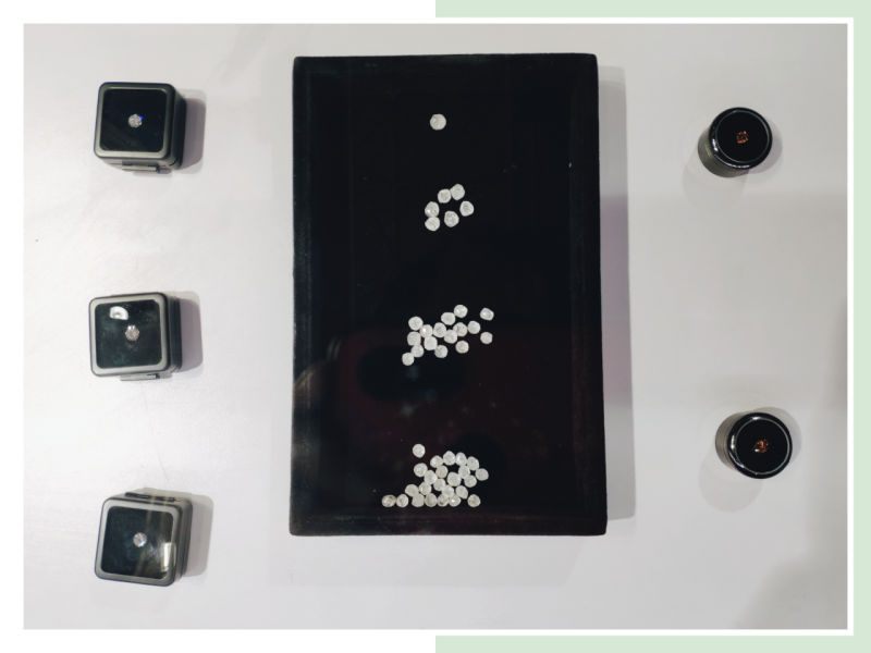 如今中國在大顆粒首飾用培育鉆石領域技術先進,掌握了克拉級培育鉆石生長技術,已實現白色、黃色等彩色培育鉆石的批量生產,白色系列培育鉆石顏色可達DEF級色,凈度可達VVS、VS、SI級。國際權威珠寶鑒定及分級機構GIA(美國寶石學院),從7月起采用新版證書,不再使用合成鉆石(Synthetic Diamond)這一稱謂,而是改稱實驗室培育鉆石(Lab-grown Diamond)。 “中國國際珠寶展”作為一年一度國內權威專業的珠寶展覽,秉承著“打造馳名品牌,共謀行業發展”的辦展宗旨,歷經二十余年的發展,現已成為國際備受矚目,國內最具人氣,業內最具影響力的珠寶行業盛會。是由兩大權威機構中國珠寶玉石首飾行業協會(以下簡稱中寶協)和國土資源部珠寶玉石首飾管理中心共同主辦的專業珠寶展,是中國乃至全球最著名、最有影響力的珠寶玉石首飾行業的線下交易平臺,本屆展會匯聚了來自20多個國家和地區的知名參展商,8個展館,近2000個展位,50000平米展出面積。 毛坯展示
